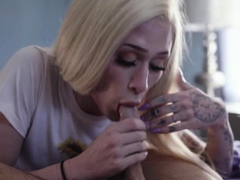 Blonde shemale lets the friend of stepbro fuck her wet ass