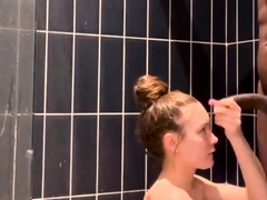 Petite Slut Sucks BBC in Shower