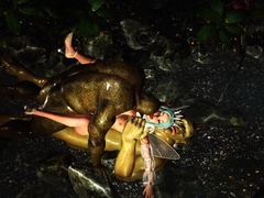 Threesome with a beautiful hot fairy and two orcs in forest
