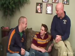 Two luscious gays fucking lucky Rob in the bedroom hard