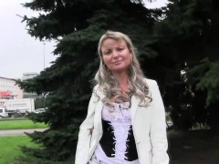 Mature blonde fucked in public