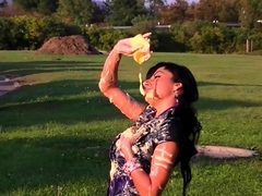 Hot big boobs latina rooftop striptease
