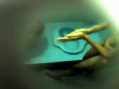 Wet African lesbians Pearl and Sara fuck in bathroom