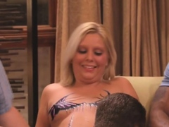 Sharing his wife to a horny stranger in a wild swinger orgy.