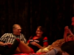 Nasty amateurs eating large dicks at a 5some swing orgy