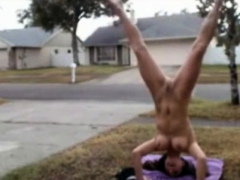 hot babe gets caught doing naked yoga in front of her house